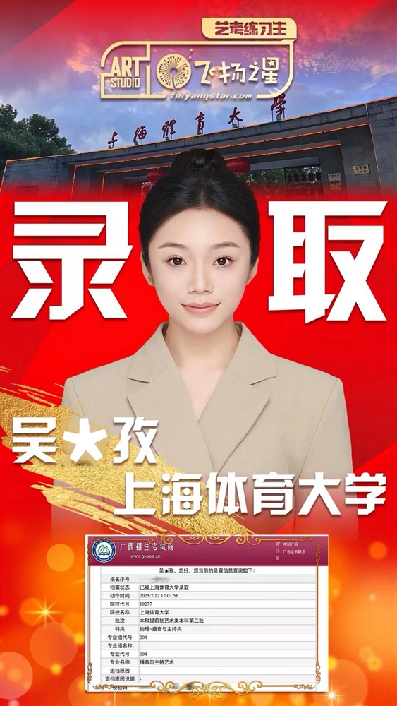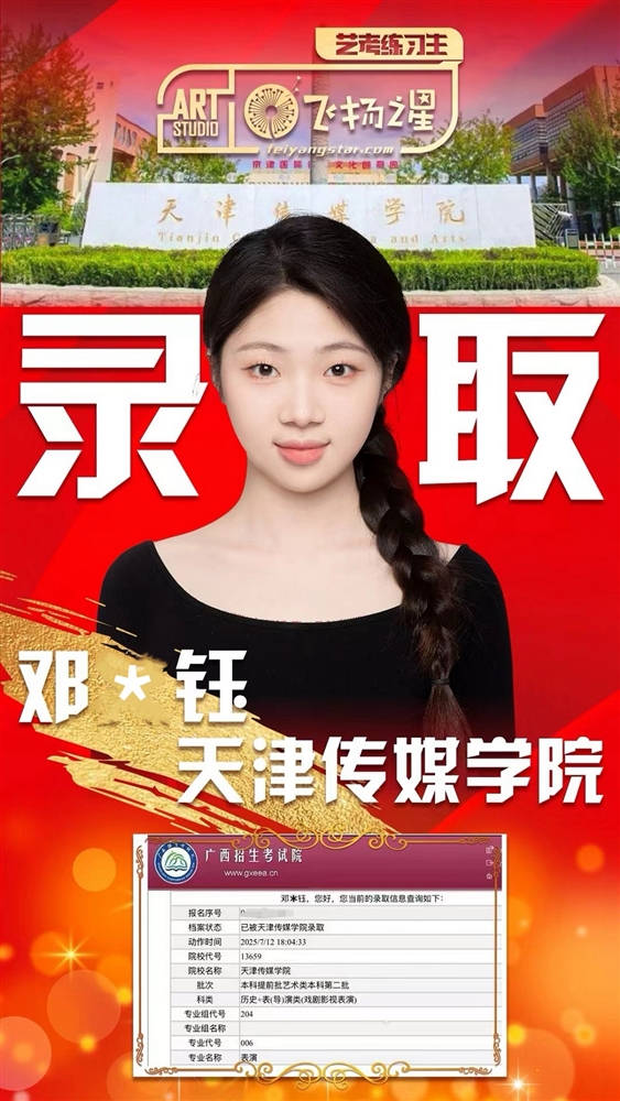 飞扬之星2025届艺考练习生录取榜